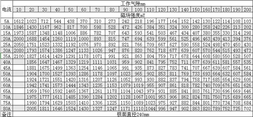 磁感應(yīng)強(qiáng)度:7000 Oe(氣隙200mm時(shí))